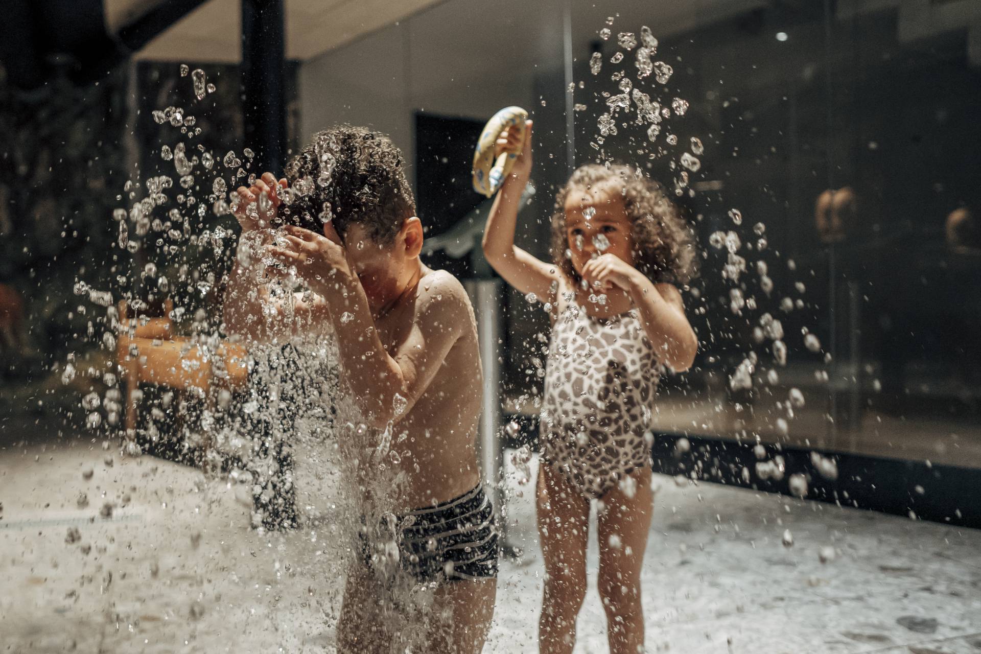 Zum waldSPA Family & Kids gehören auch ein Babybecken mit 25 Zentimeter Tiefe und ein Kinderbecken mit 50 Zentimeter Tiefe. Nicht fehlen dürfen auch hier die Rutschen – selbstverständlich dem Alter angepasst. Und wer beobachtet das Treiben vom Beckenrand aus? Unser Maskottchen Rocky, der Wasser spritzt. Ein weiteres Highlight ist die neue Wasserwerkstatt – Zum Toben zwischen Wasserfall und Fontänen gibt es hier sogar Wasserpistolen: Aufgepasst, Wasser marsch!