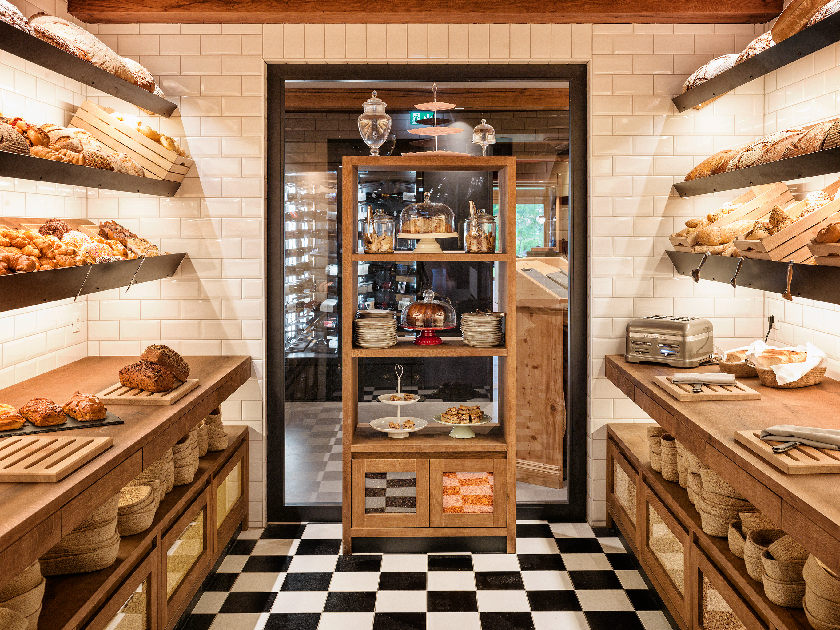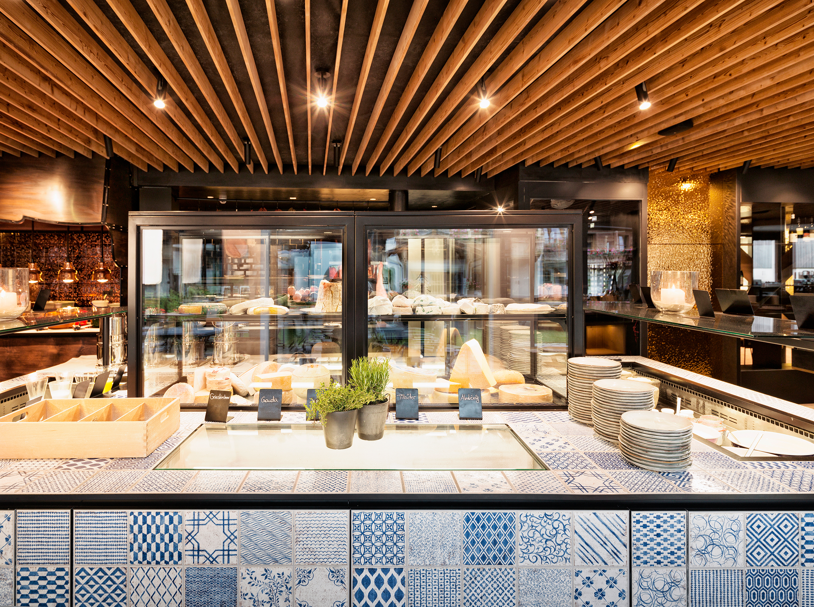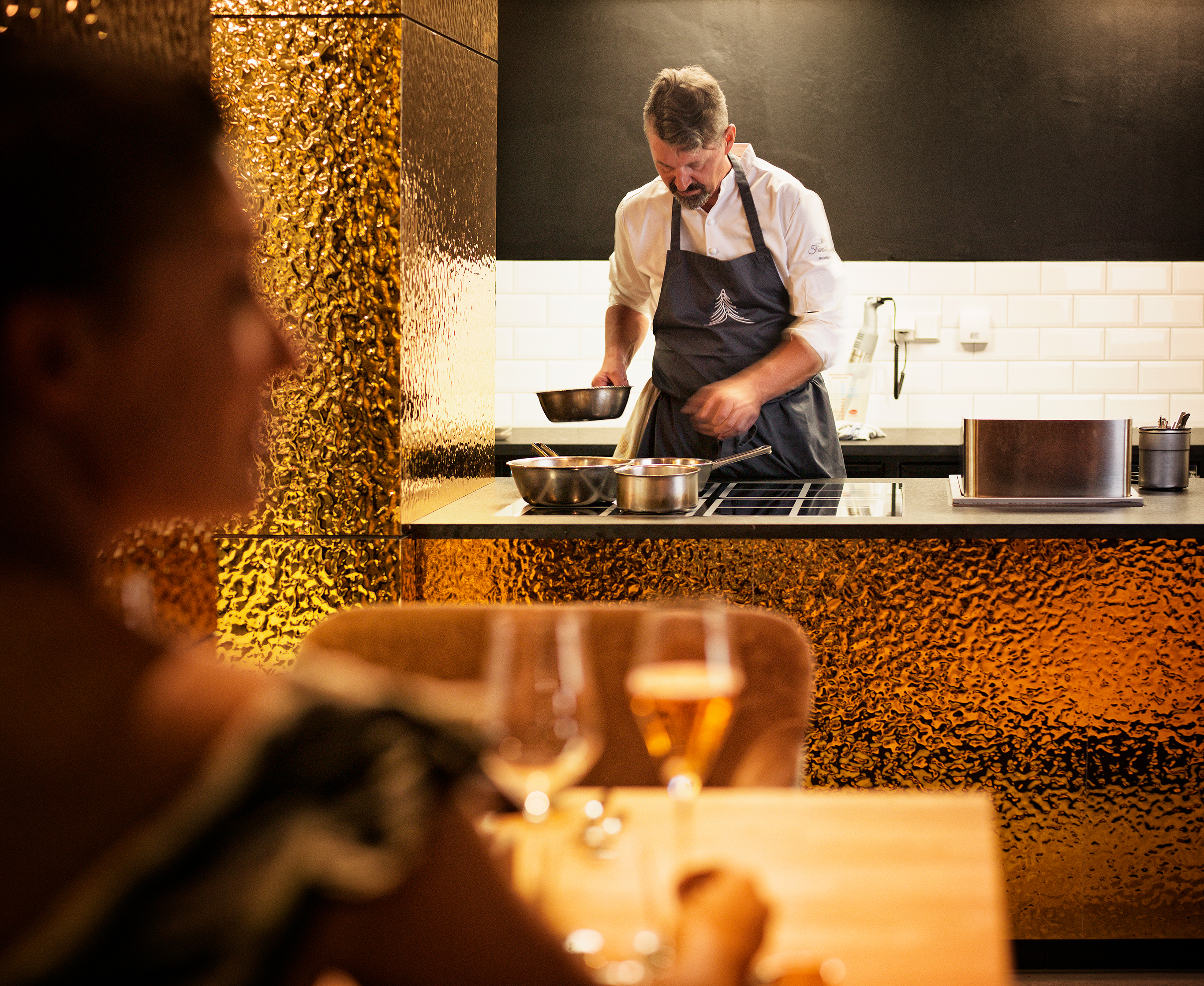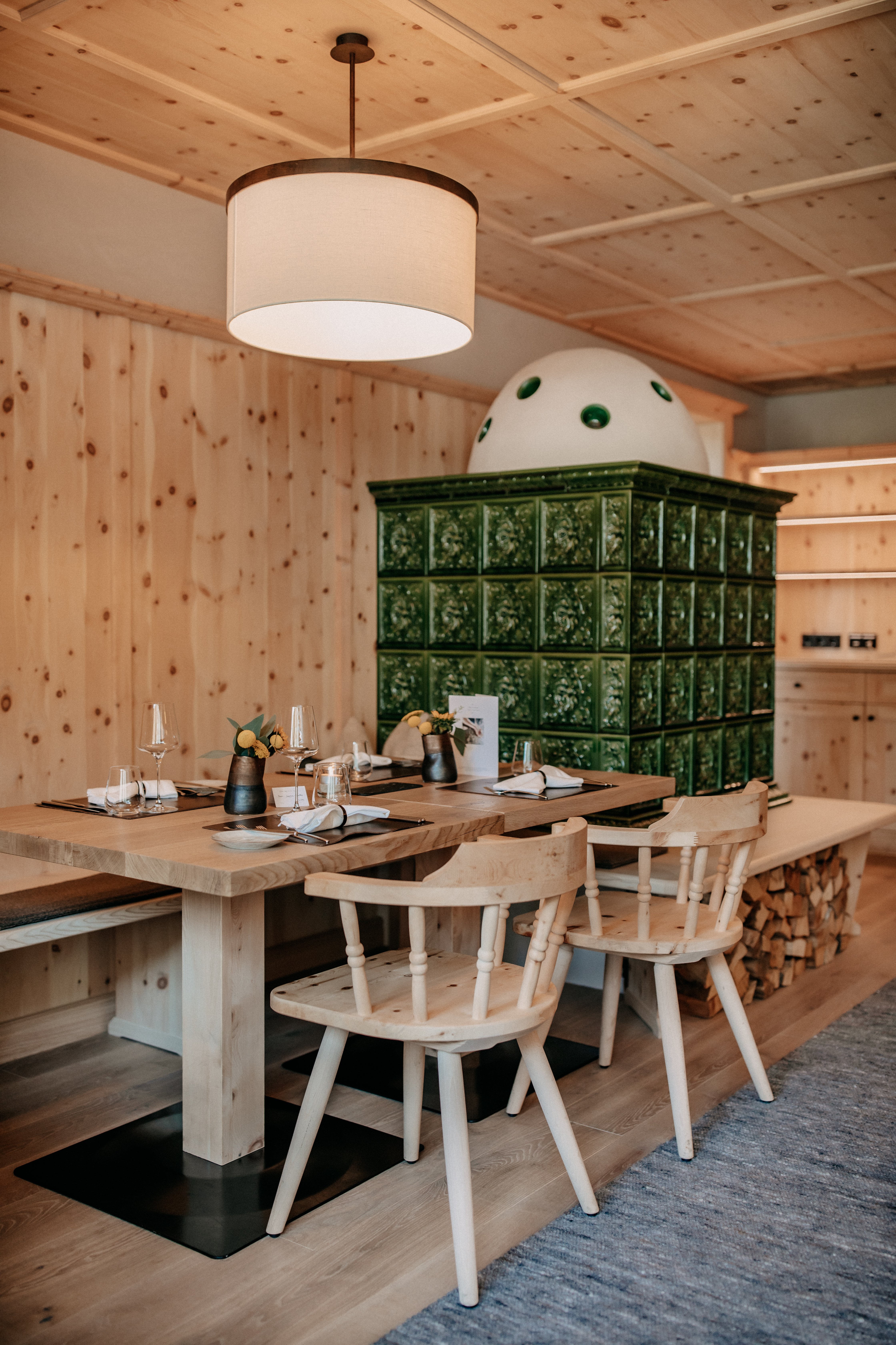 Interior view of the restaurant with wood-fired oven at the Naturhotel Forsthofgut