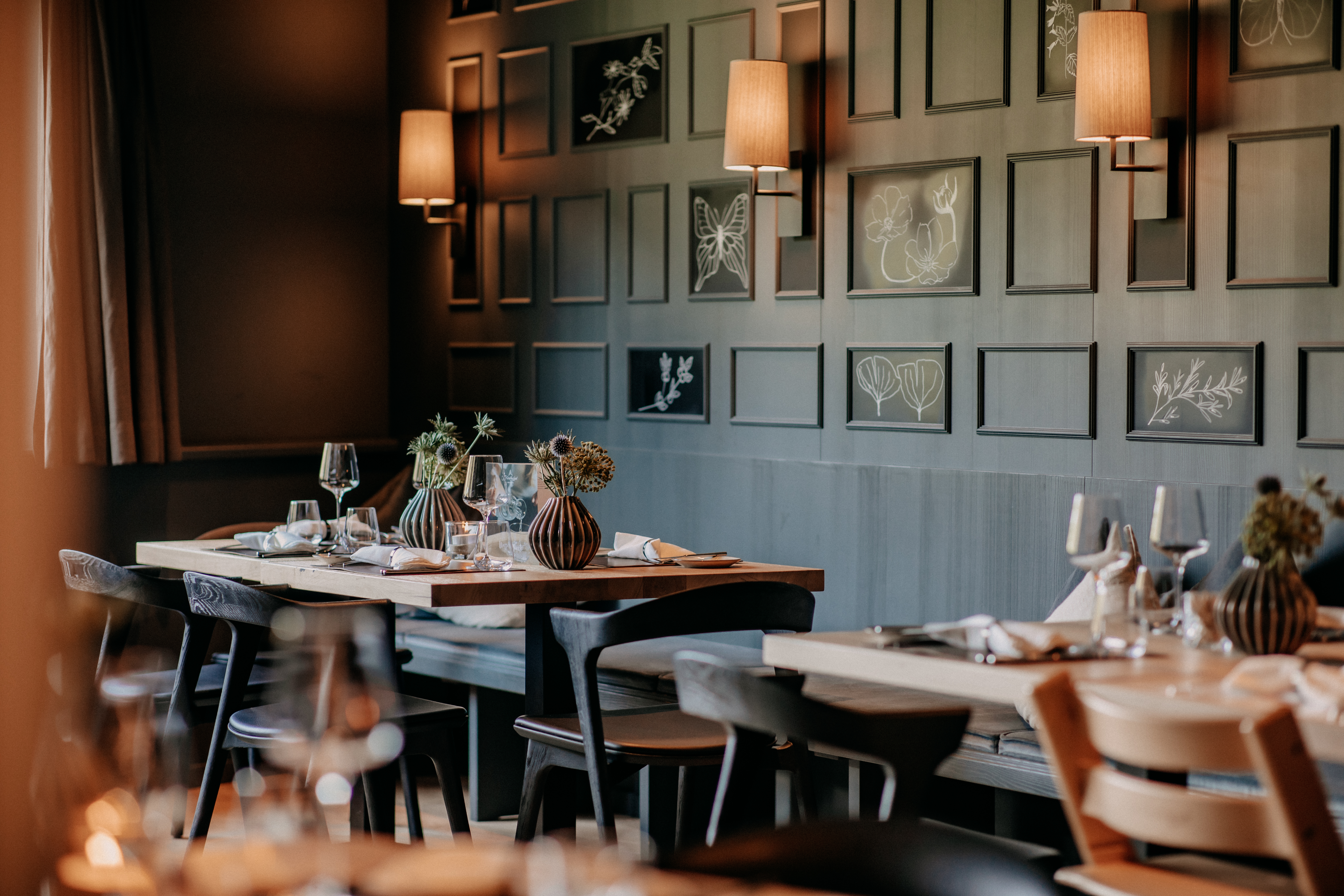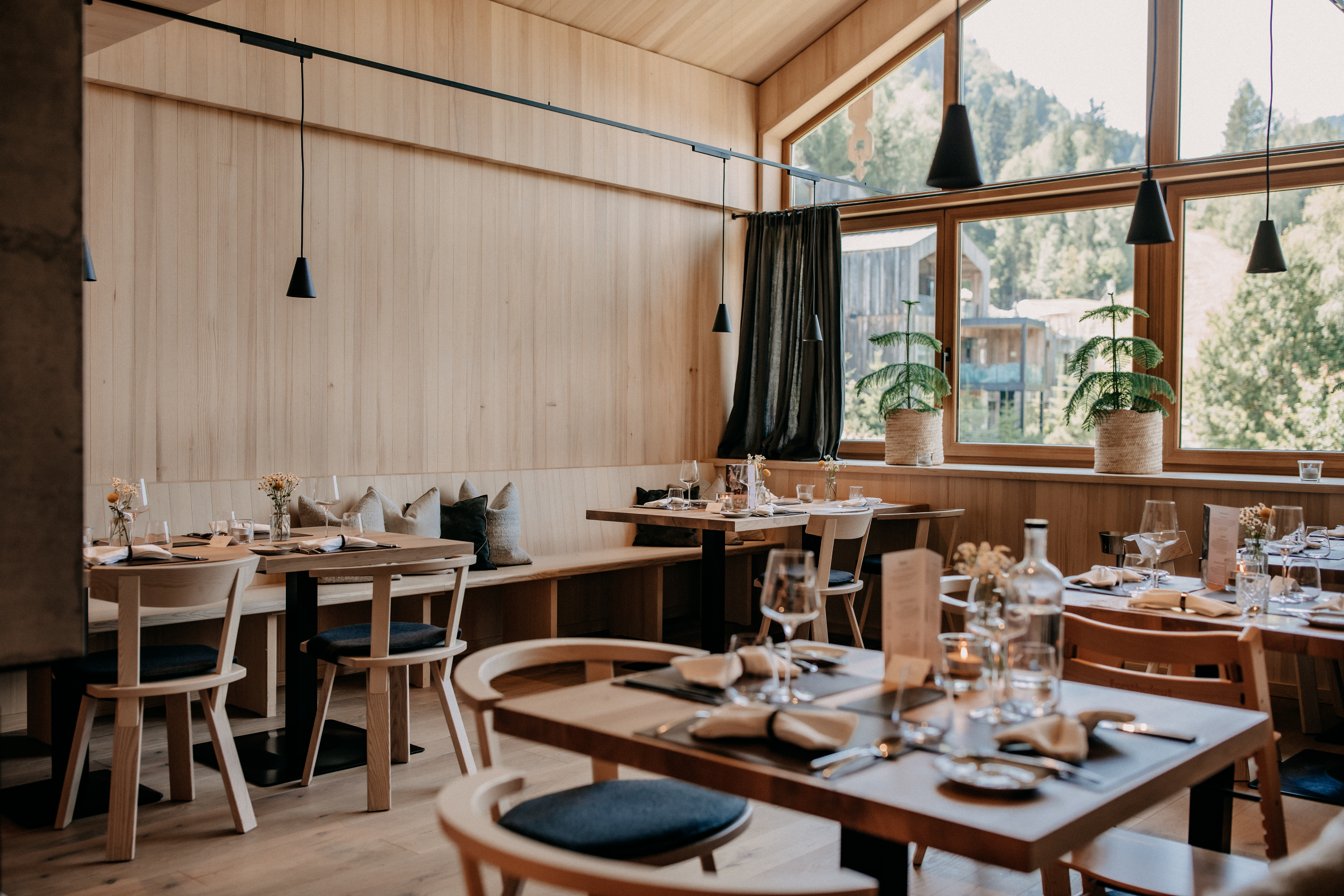 Restaurant set tables Naturhotel Forsthofgut
